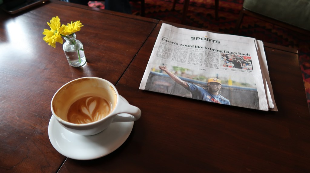 What really made Pavon stand out, though, was the overall atmosphere. The interior is a cozy haven with charming touches everywhere: each table is graced with a live yellow flower in a vase, brightening the space and adding a dash of natural beauty. There are comfy couches and strategically placed chairs that create little pockets of intimacy, perfect for deep work or relaxed conversations. Although there’s an outdoor patio with plenty of tables and chairs, the chilly weather kept me (and everyone else) inside on this February day.