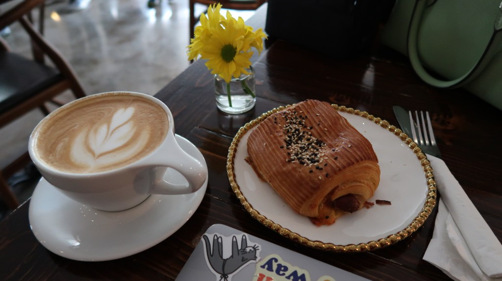 I began my visit with a plain latte that was anything but plain. Adorned with delicate lotus flower coffee art, it was almost too pretty to drink (almost!). That moment of artful caffeine was quickly followed by a bite of a heavenly beef sausage and cheese croissant. It was savory and satisfying, a delicious nod to the idea that sometimes a simple pastry can be a real treat. Not one to settle for just one coffee fix, I later indulged in a vanilla rose latte—a playful, slightly floral twist that was both unexpected and delightful.